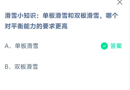 滑雪小知识:单板滑雪和双板滑雪,哪个对平衡能力的要求更高?是今天《支付宝》每日一题的问题,相信我们很多用户都很想知道这个问题的答案是什么?这么一个可以领取饲料的机会相信我们很多用户都不想错过,这里指玩手游网的小编为你带来了2026《支付宝》3月10日每日一题最新答案介绍(2)的全部内容,喜欢的小伙伴欢迎点击进入看看吧。