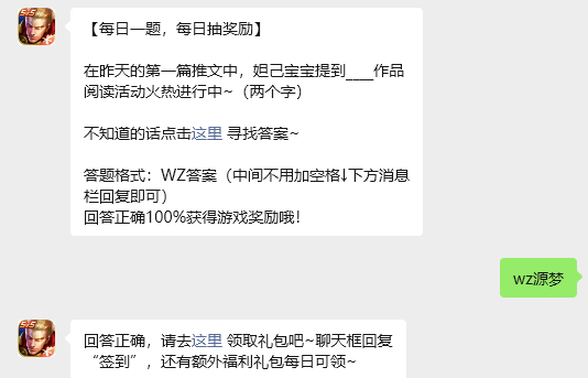 在昨天的第一篇推文中,妲己宝宝提到____作品阅读活动火热进行中~(两个字),玩家只需要回答对今日的问题,即可获取游戏奖励,那么答案到底是什么呢?现在就让指玩手游网的小编为大家带来关于2026《王者荣耀》3月10日每日一题答案介绍的全部内容吧,感兴趣的小伙伴一定不要错过哦。