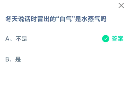 冬天说话时冒出的“白气”是水蒸气吗?是今天《支付宝》每日一题的问题,相信我们很多用户都很想知道这个问题的答案是什么?这么一个可以领取饲料的机会相信我们很多用户都不想错过,这里指玩手游网的小编为你带来了2026《支付宝》3月11日每日一题最新答案介绍(2)的全部内容,喜欢的小伙伴欢迎点击进入看看吧。