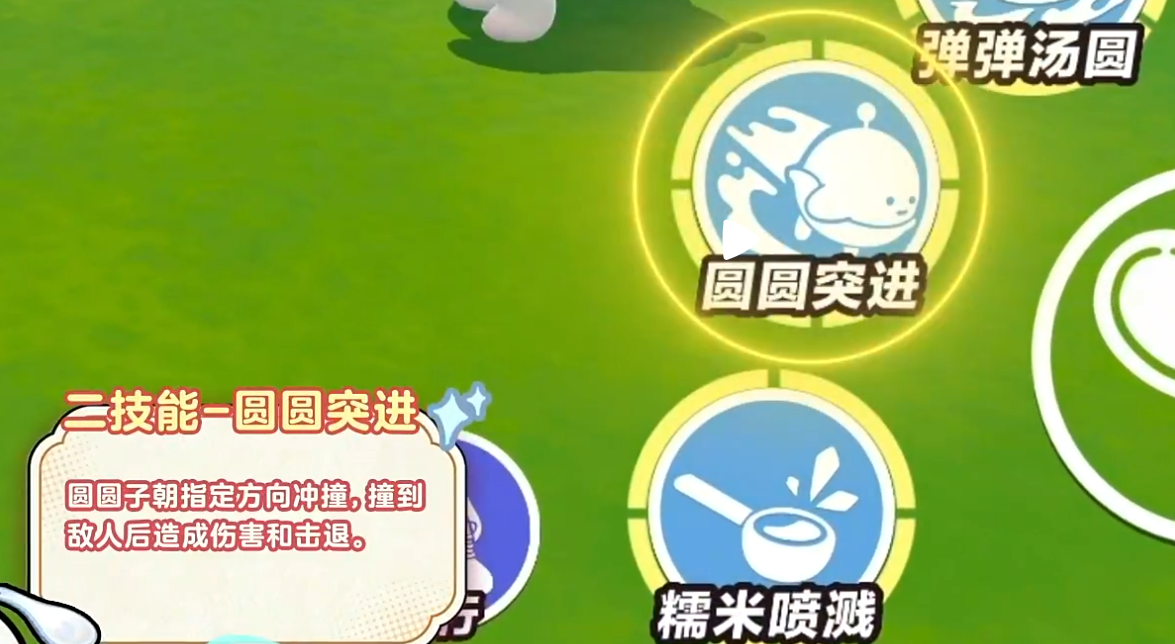 鼓起肚子,用勺子震散糯米浆,对周围敌人造成伤害并减速。适合控制对手移动,为连招创造机会。
