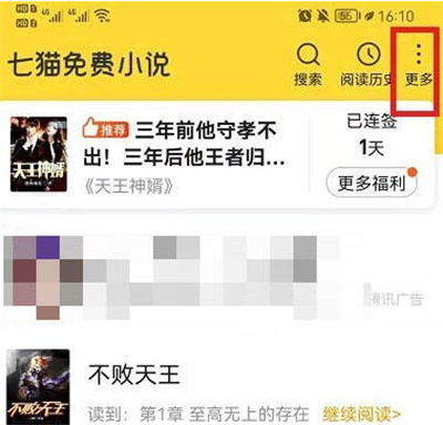 进入七猫小说,点击右上角的更多。