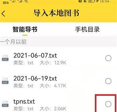 从手机中选择想看的txt文件完成导入。