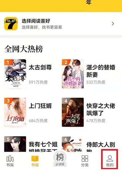打开七猫小说 → 点击右下角 我的。