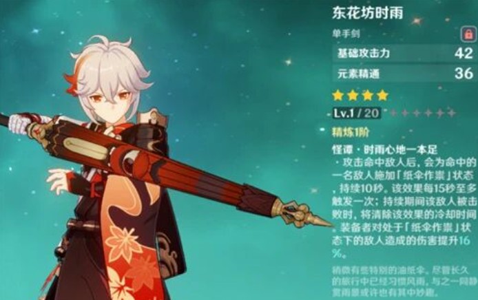 3.3版本活动单手剑,以伞为造型,万叶、妮露等角色可用,独特设计兼具收藏价值。