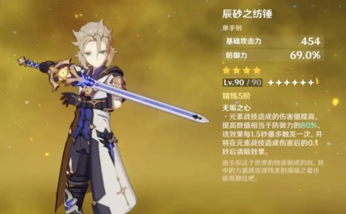 外观与阿贝多高度契合,是无专武玩家的优质下位替代,实用性不错。