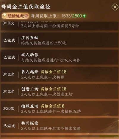 师徒任务的燃心次数有限制,为6次。但在做燃心的同时,江湖风雨事的进度也会同步提升,一举两得!之后可以做些简单的任务,比如打坐、拍照、松土、双人动作(推荐金兰举杯动作)。
