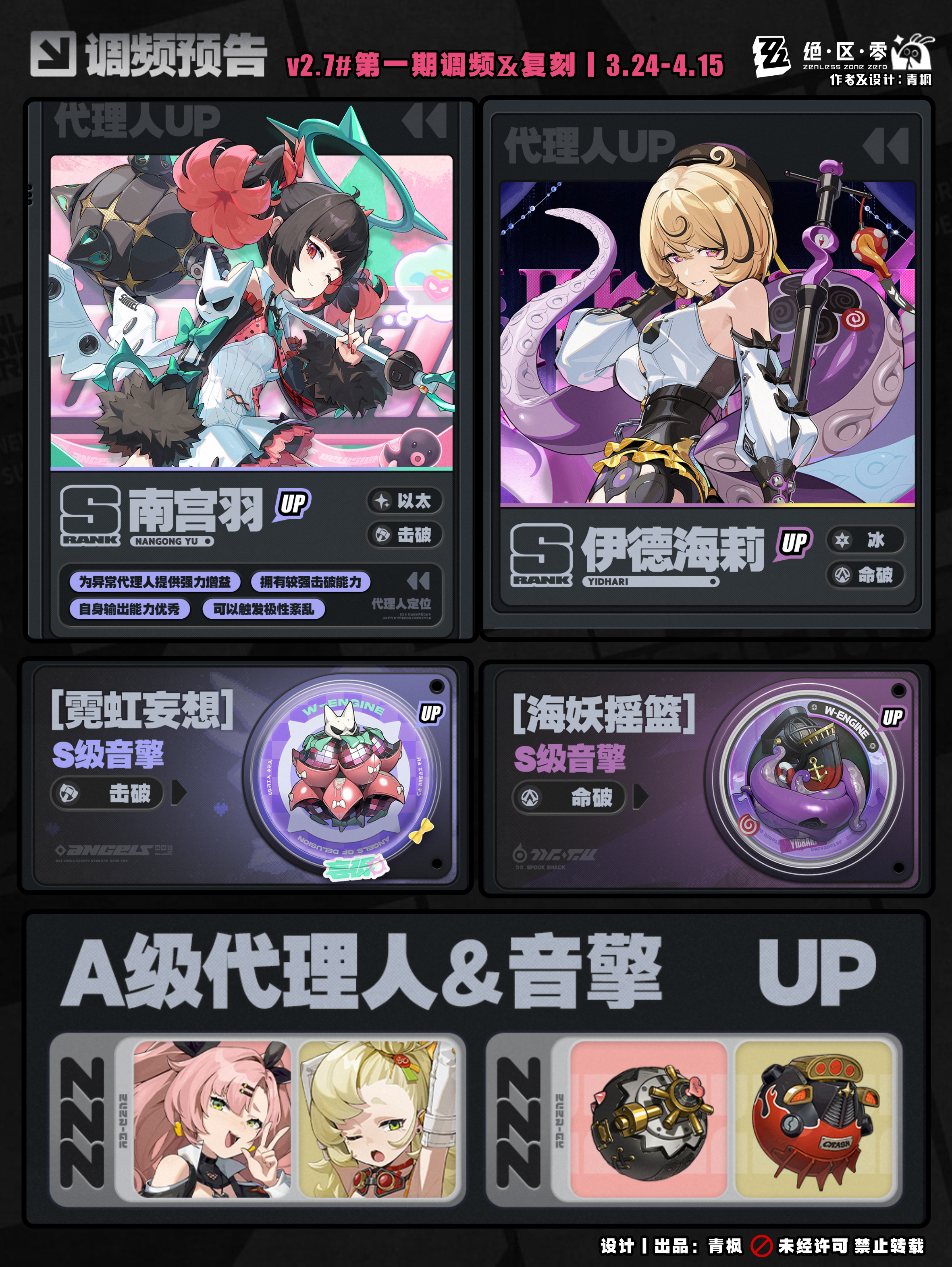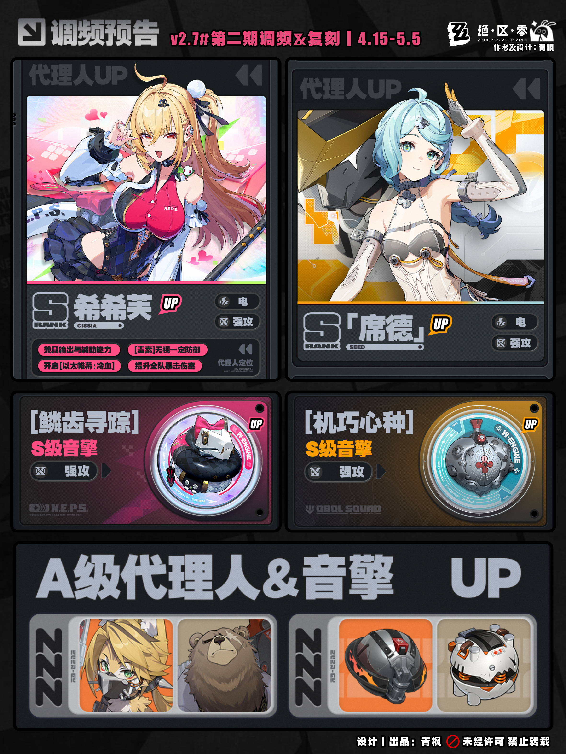 NEW代理人:上半调频-南宫羽(S击破·以太)、下半调频-希希芙(S强攻·电)