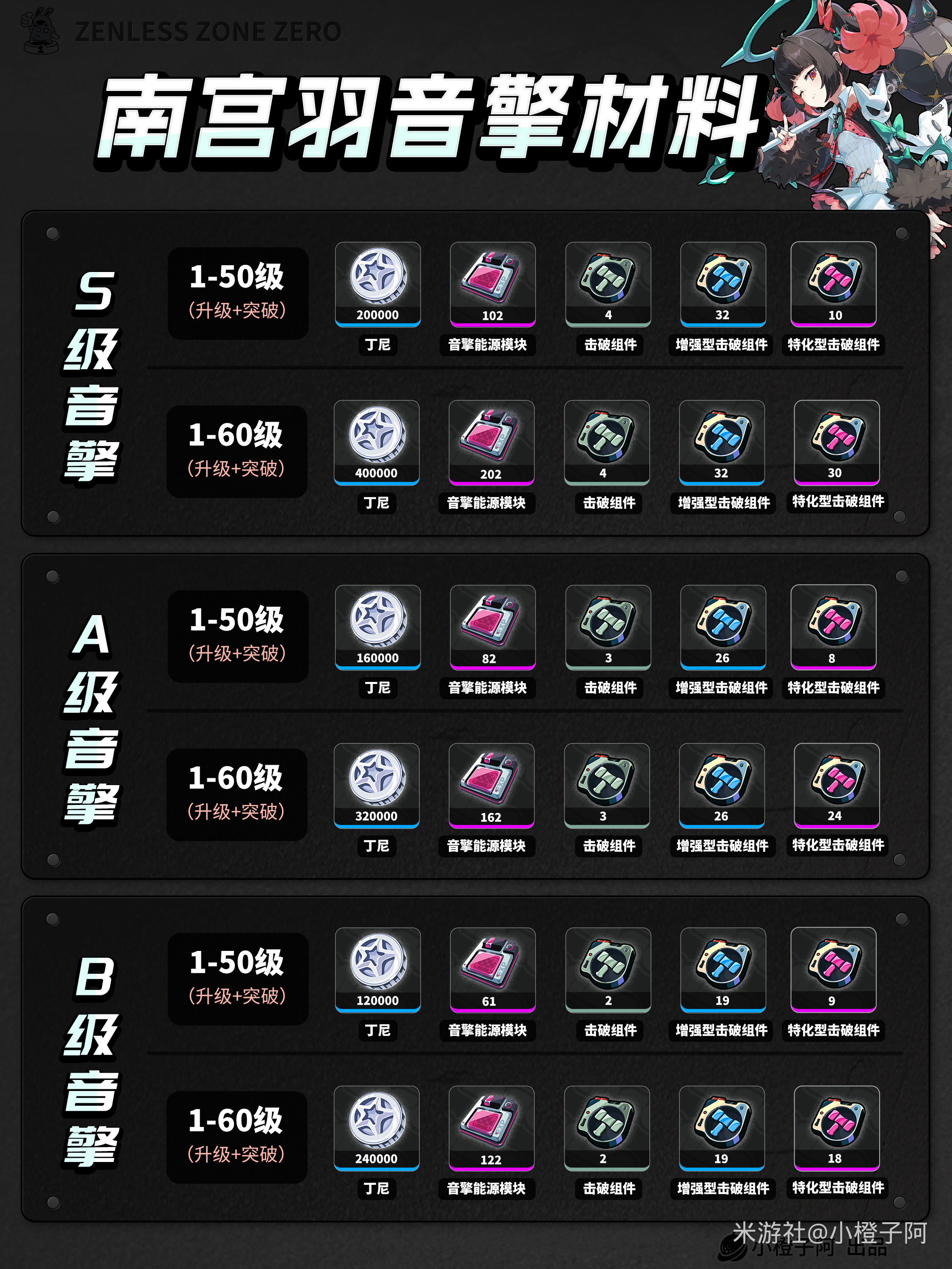 以上就是指玩手游网小编为你带来的《绝区零》南宫羽养成材料统计的全部内容,更多精彩游戏攻略资讯尽在指玩手游网,感兴趣的小伙伴欢迎点击关注收藏本网站哦。