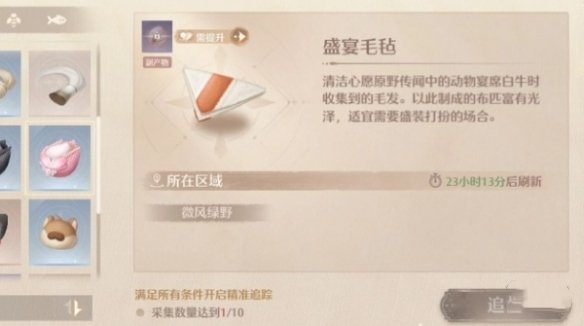 3、白色牛头上方会有裙撑萤,先用捕捉套捕捉萤火虫,再换上清洁套即可获得盛宴毛毡。
