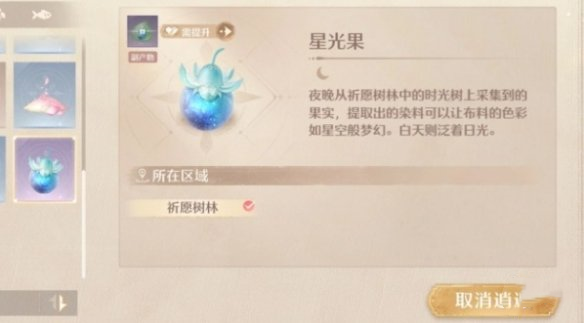 2、在祈愿树林的星光树上,白天可以采集到日光果,而夜晚同一棵树则会产出夜光果。