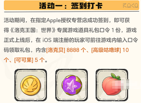 Apple授权店线下活动兑换码(奖励:8888洛克贝、10个高级咕噜球、5个可可果,仅限iOS注册玩家)