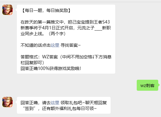 在昨天的第一篇推文中,妲己宝宝提到王者S43新赛季将于4月1日正式开启,元流之子____新职业同步上线。(两个字),玩家只需要回答对今日的问题,即可获取游戏奖励,那么答案到底是什么呢?现在就让指玩手游网的小编为大家带来关于2026《王者荣耀》3月27日每日一题答案介绍的全部内容吧,感兴趣的小伙伴一定不要错过哦。