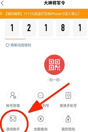 4、在 大神将军令 页面,选择 “游戏助手”。