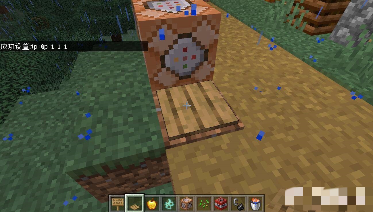 3,最后踩上踏板,就可以用命令方块传送位置了。