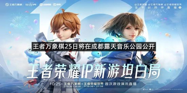 作为王者荣耀十周年特别玩法,王者万象棋将于10月25-26日在成都露天音乐公园首次亮相,带来全新策略对战体验,现场试玩、沉浸对局,开启不一样的王者世界!