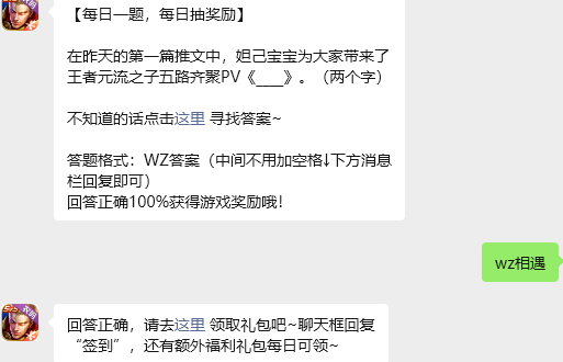 在昨天的第一篇推文中,妲己宝宝为大家带来了王者元流之子五路齐聚PV《____》。(两个字)