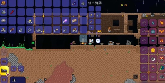 制作家具与装饰:床(设置重生点/跳过夜晚)、椅子、桌子、书架、时钟、酒桶、织布机