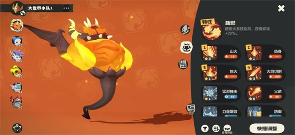 技能:怒火、热身、山火、火焰切割