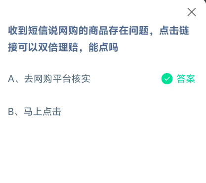 收到短信说网购的商品存在问题,点击链接可以双倍理赔,能点吗?用户们答对问题即可获得饲料,那么现在就让指玩手游网的小编为大家带来关于《支付宝》10月21日每日一题最新答案介绍(2)的全部内容吧,感兴趣的小伙伴一定不要错过哦。
