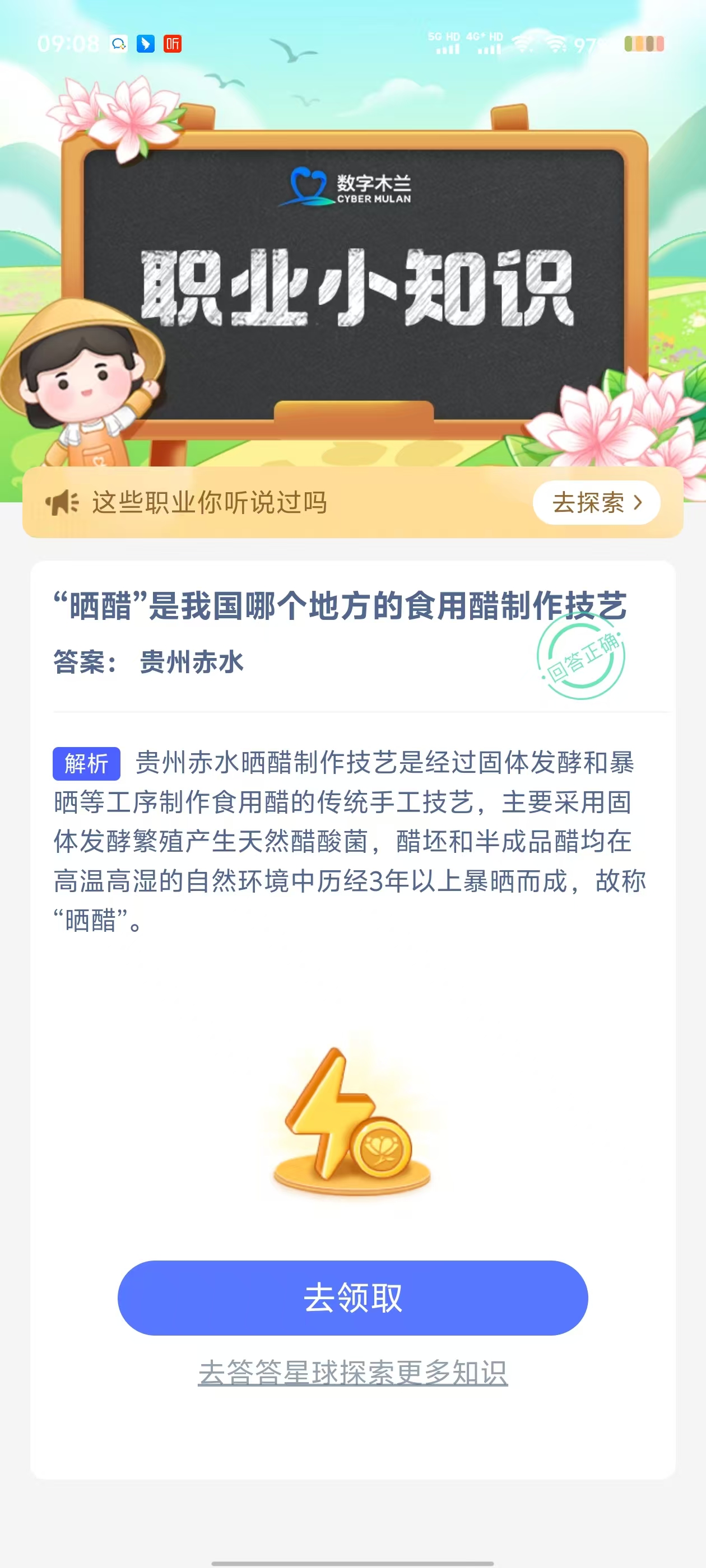 2、在【职业小知识问答】对话框中,点击【去完成】进入答题页面;