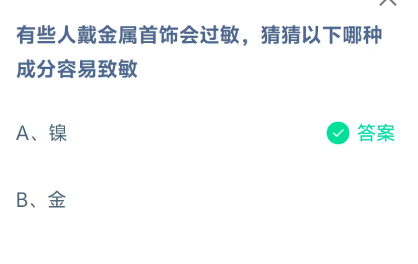 有些人戴金属首饰会过敏,猜猜以下哪种成分容易致敏?支付宝今日的每日一题答案是什么呢?用户们答对问题即可获得饲料,那么现在就让指玩手游网的小编为大家带来关于《支付宝》10月21日每日一题最新答案介绍(2)的全部内容吧,感兴趣的小伙伴一定不要错过哦。
