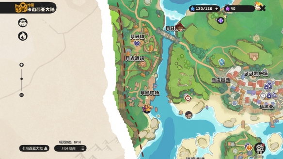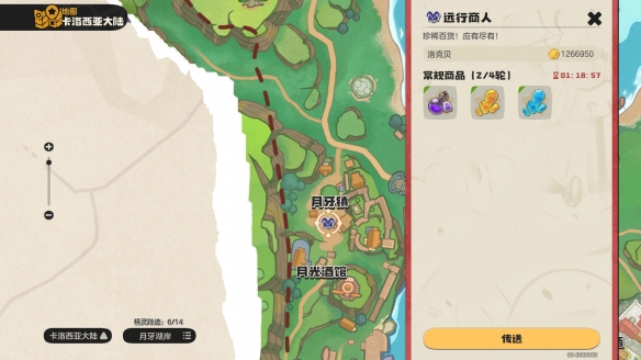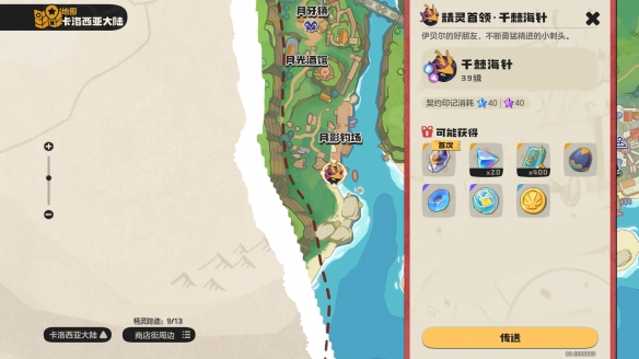 打开地图,前往千棘海针,点击传送到月影钓场。