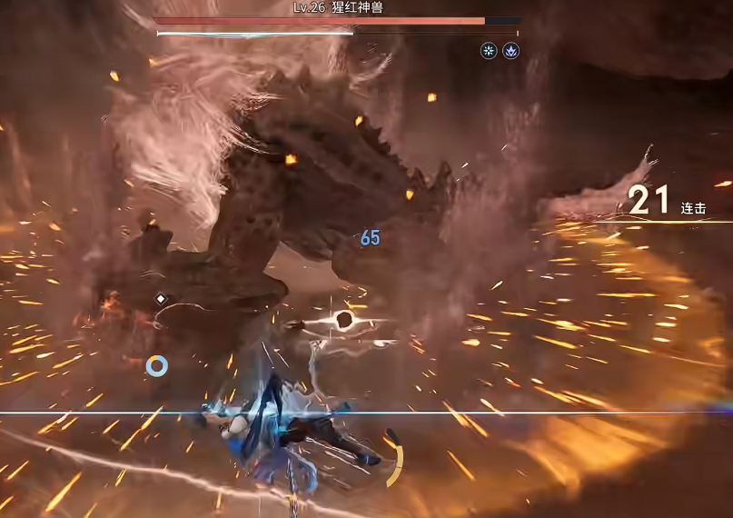 熟悉boss机制也非常关键。例如对猩红神兽,其尾部是最脆弱的攻击点,持续攻击几秒后,它会释放下方熔浆,这时闪避即可触发几秒无敌状态,抓住机会反击即可保持无伤连击。