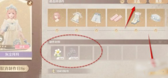 2、收集到足够的材料后,点击【全选】按钮,接着选择右下角的【全光恩选】按钮。