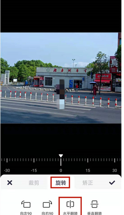 第三步,在编辑界面点击「旋转」,再选择「水平翻转」,即可完成操作。