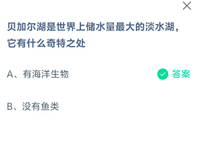 贝加尔湖是世界上储水量最大的淡水湖,它有什么奇特之处?这是今天《支付宝》每日一题的问题,相信我们很多用户都很想知道这个问题的答案是什么?这么一个可以领取饲料的机会相信我们很多用户都不想错过,这里指玩手游网的小编为你带来了2026《支付宝》4月14日每日一题最新答案介绍(1)的全部内容,喜欢的小伙伴欢迎点击进入看看吧。