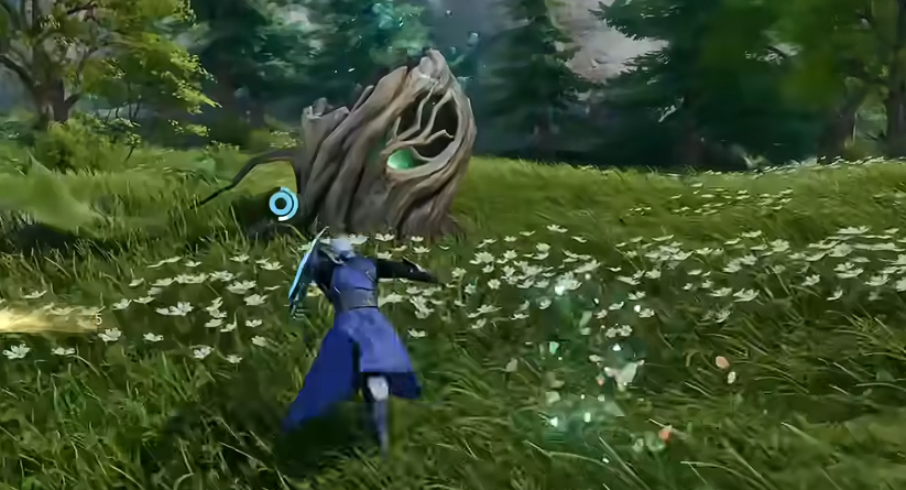 匿灵通常藏在树桩中,呈潜伏状态,靠近会立即缩回。该类目标无法通过近战触发,必须用远程方式命中才会现身并转化为宝箱。