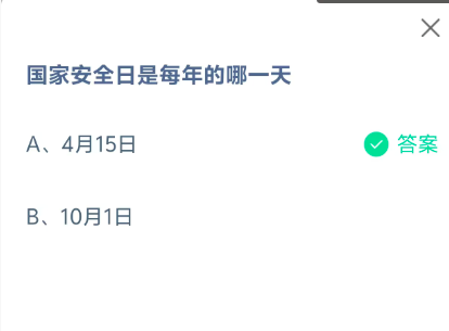 国家安全日是每年的哪一天?这是今天《支付宝》每日一题的问题,相信我们很多用户都很想知道这个问题的答案是什么?这么一个可以领取饲料的机会相信我们很多用户都不想错过,这里指玩手游网的小编为你带来了2026《支付宝》4月15日每日一题最新答案介绍(2)的全部内容,喜欢的小伙伴欢迎点击进入看看吧。