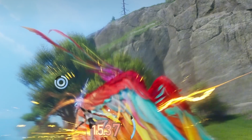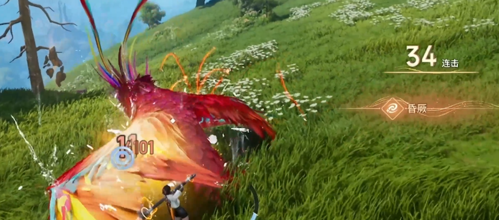 使用源流武器时,闪避反击后手边会出现一圈顺时针汇聚的光,再点一次鼠标左键即可释放特殊技能“一瞬激流”。火隼继续出招时,依旧遵循翅膀最高点闪避的节奏。