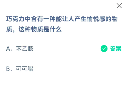 巧克力中含有一种能让人产生愉悦感的物质,这种物质是什么?这是今天《支付宝》每日一题的问题,相信我们很多用户都很想知道这个问题的答案是什么?这么一个可以领取饲料的机会相信我们很多用户都不想错过,这里指玩手游网的小编为你带来了2026《支付宝》4月16日每日一题最新答案介绍(2)的全部内容,喜欢的小伙伴欢迎点击进入看看吧。
