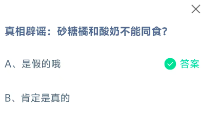 真相辟谣:砂糖橘和酸奶不能同食?这是今天《支付宝》每日一题的问题,相信我们很多用户都很想知道这个问题的答案是什么?这么一个可以领取饲料的机会相信我们很多用户都不想错过,这里指玩手游网的小编为你带来了2026《支付宝》4月17日每日一题最新答案介绍(2)的全部内容,喜欢的小伙伴欢迎点击进入看看吧。