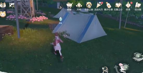 2、随后向西方向前进,走到帐篷附近后选择点击等待。