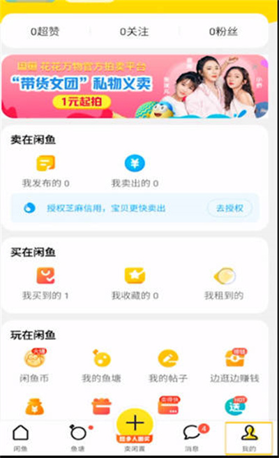 打开"闲鱼",点击右下角「我的」。