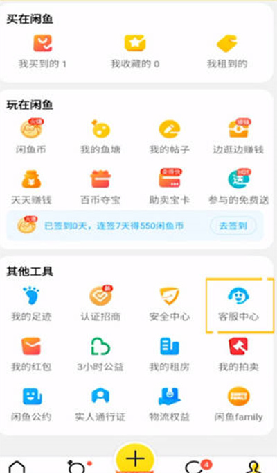 在个人页面中,找到并点击「客服中心」。