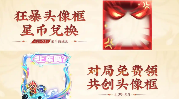 “狂暴”头像框可用星币兑换(4月29日-5月13日)。