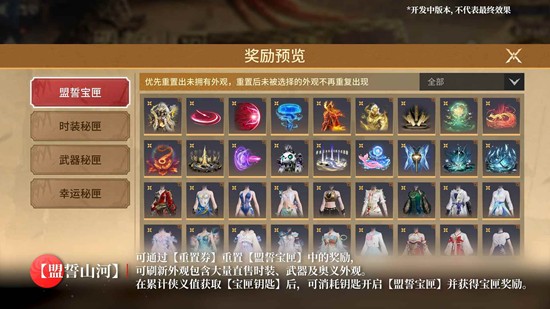 同时,活动开放盟誓宝匣,可反复刷新奖励,直至获得心仪奥义特效或极品时装,大幅提升获取心仪道具的概率。