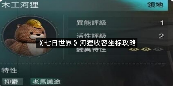 在《七日世界》中河狸是领地管理型异常物,可协助玩家自动伐木,提升资源效率。那么该如何收容河狸?河狸收容的位置在哪呢?现在就让指玩手游网的小编为大家带来关于《七日世界》河狸收容坐标攻略的全部内容吧,感兴趣的小伙伴一定不要错过哦。