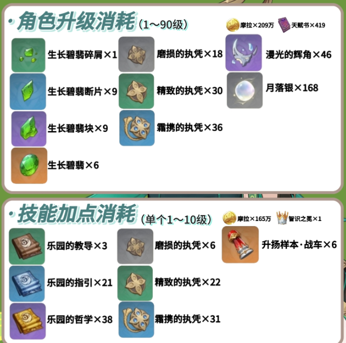 一、角色及技能升级消耗材料