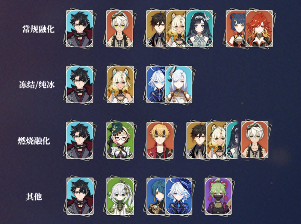 冻绽/燃融变体:可搭配纳西妲、托马、久岐忍等,适配草/火反应