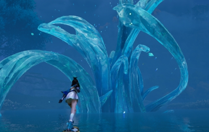 到达传送点后,回看身后的石柱,寻找闪光点(赋神令位置)