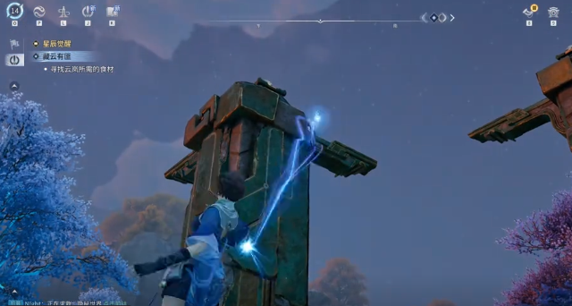 放置完毕后,返回遗迹地面,找到最初的碎片位置,牵引初始碎片并进入洞内。