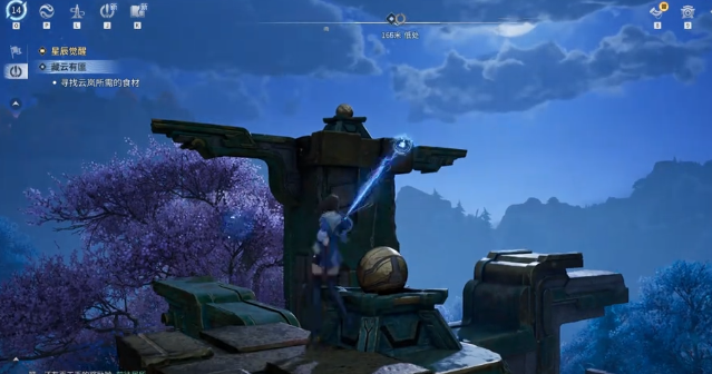 完成第一个铁球机关后,移动视角向左上方,找到第二根可交互柱子。