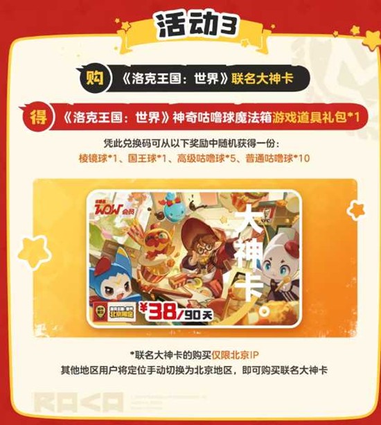 从4月29日10:30起,购买联名大神卡可获得《洛克王国:世界》神奇咕噜球魔法箱游戏道具礼包*1