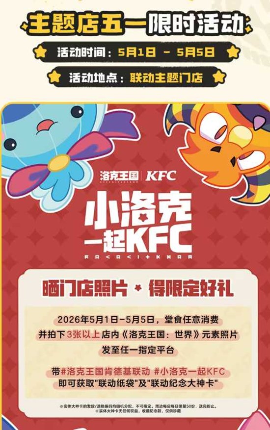 在北京肯德基联名主题门店拍摄3张及以上带《洛克王国:世界》元素的照片,并发布社媒话题#洛克王国肯德基联动#,可获得: