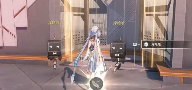 2、传送抵达后,会看到两个机器人角色——库哼哼和库哈哈,靠近他们后,需要将游戏时间手动调整至下午18:00。