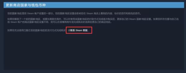 4、最后,用户需通过“联系 Steam 客服”发起地区更改申请,系统将依据您的网络IP地址进行位置校验,以确认所提交地区的有效性。